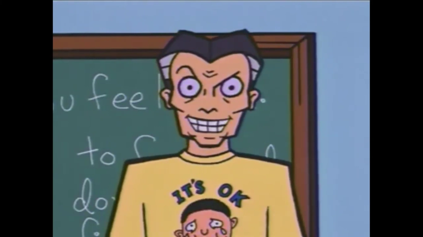 Mr. DeMartino has a seething hatred for most of the student body at Lawndale High, because the majority of them are either lazy, slackers, or absurdly stupid. All of these characteristics in turn make his job less fulfilling and lead to outbursts of rage; everyone seems used to this by now and barely respond, outside of Daria and Jane snarky comments, though Jane once joked that he caused students to wet the bed (The Big House).