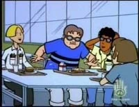 These three guys are friends of The Head, and they sit together with him at lunch. They were first pointed out in Quinn the Brain; Daria and Jane used their existence as a taunt to Quinn, and presumably aren't too impressed with them either. From left to right, Nerd 1 (blond), Nerd 2 (fat), and Nerd 3 (black male). They're rarely seen, presumably avoiding everyone else; Nerd 2 did witness Ms Li's freakout in Fizz Ed. Nerd 2 can sneeze milk from his nose, which the others find hilarious.